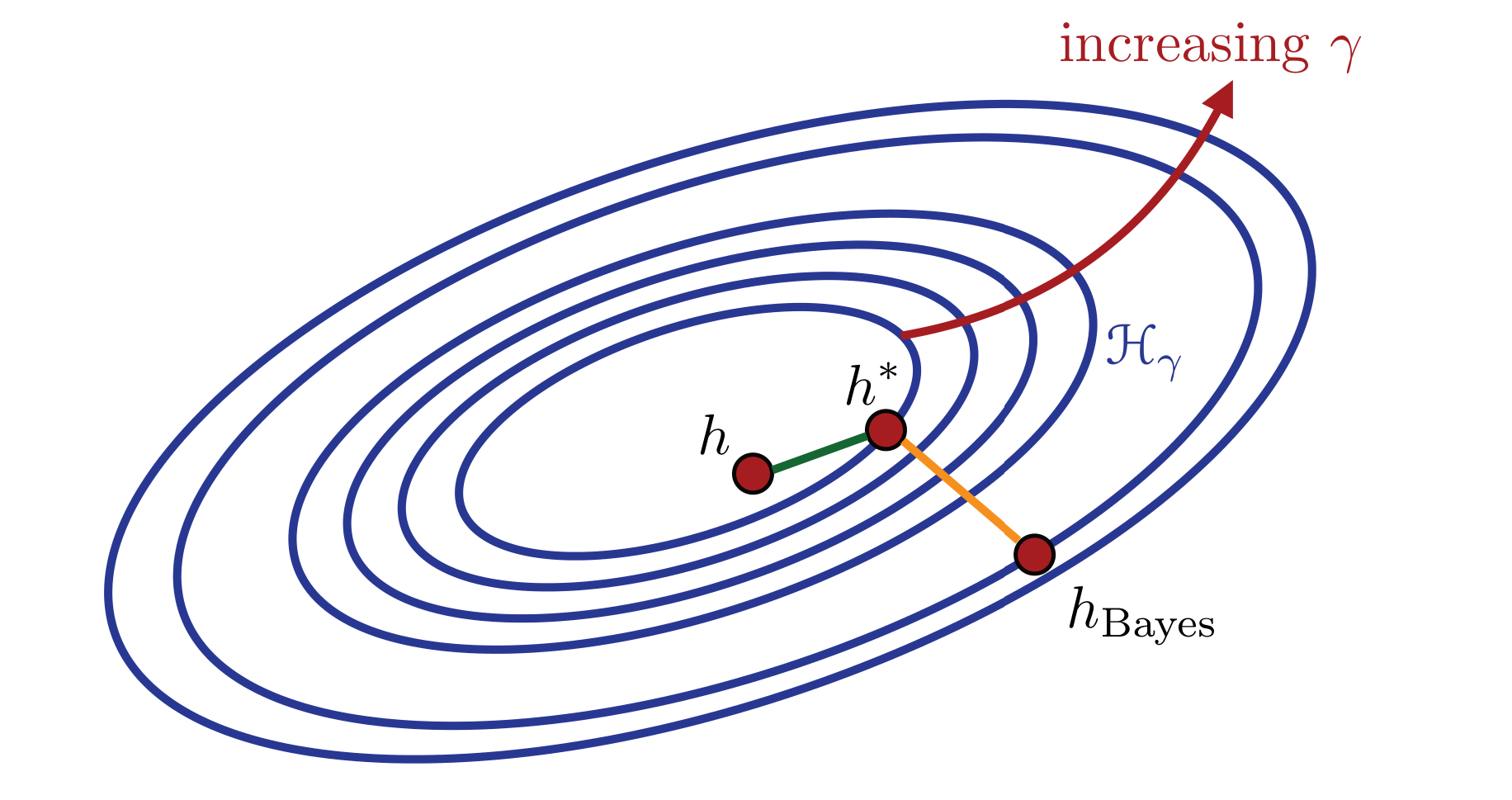 Want \(\Hcal\) and algorithms that “tend to” return \(\hat{h}_S(\cdot)\in \Hcal\) with “low” \(R(\hat{h}_S)\)